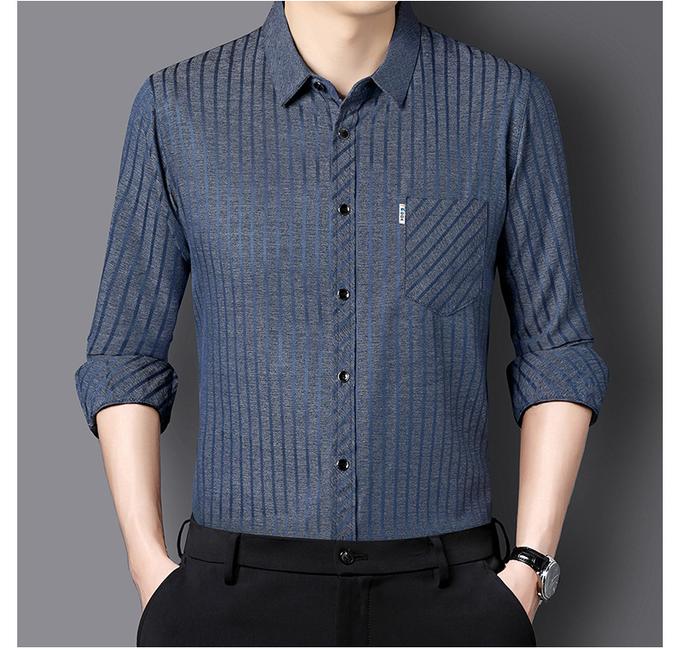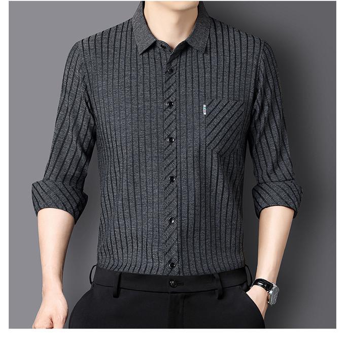 امنح نفسك لمسة راقية مع قميص رجالي مخطط، ذو تصميم راقي
