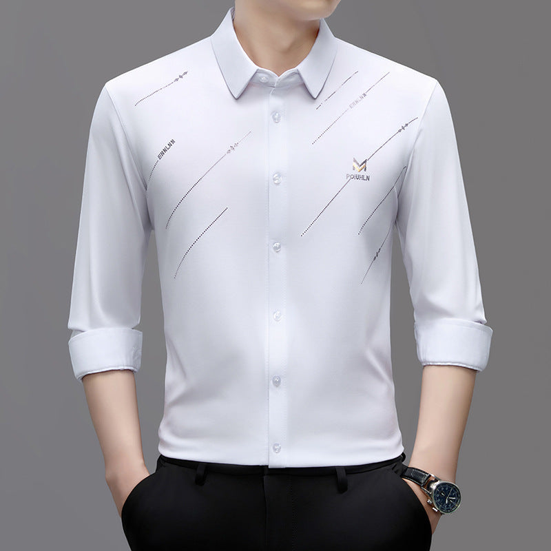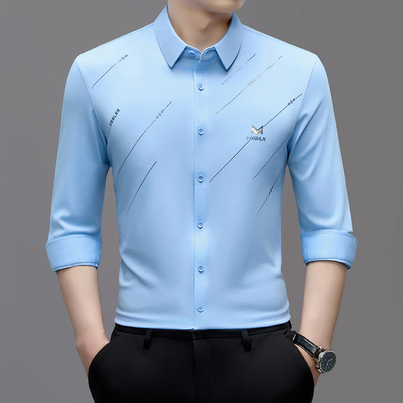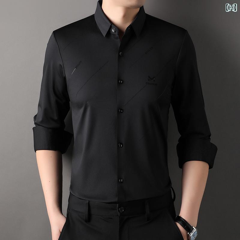 قميص رجالي من قماش مطاطي، بدون تجاعيد و غير قابل للكي